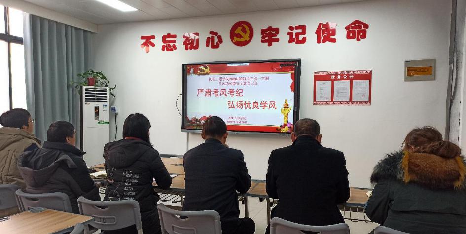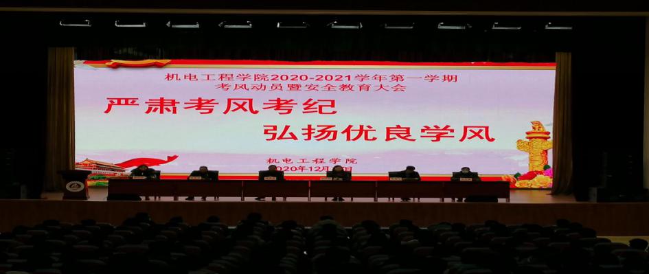 为严肃考风考纪,弘扬优良学风,机电工程学院分别于于2020年12月17日和12月18日在我校大礼堂和通过线上视频方式举行了西校区和东校区期末考试考风动员大会。机电工程学院院长黄双成、党总支书记邓艳丽、副院长李凤银、学院团总支书记张光锋、学工处主任郭娇娇、办公室主任张翼飞和19、20级在校生参加了此次会议。会议由办公室主任张翼飞主持。