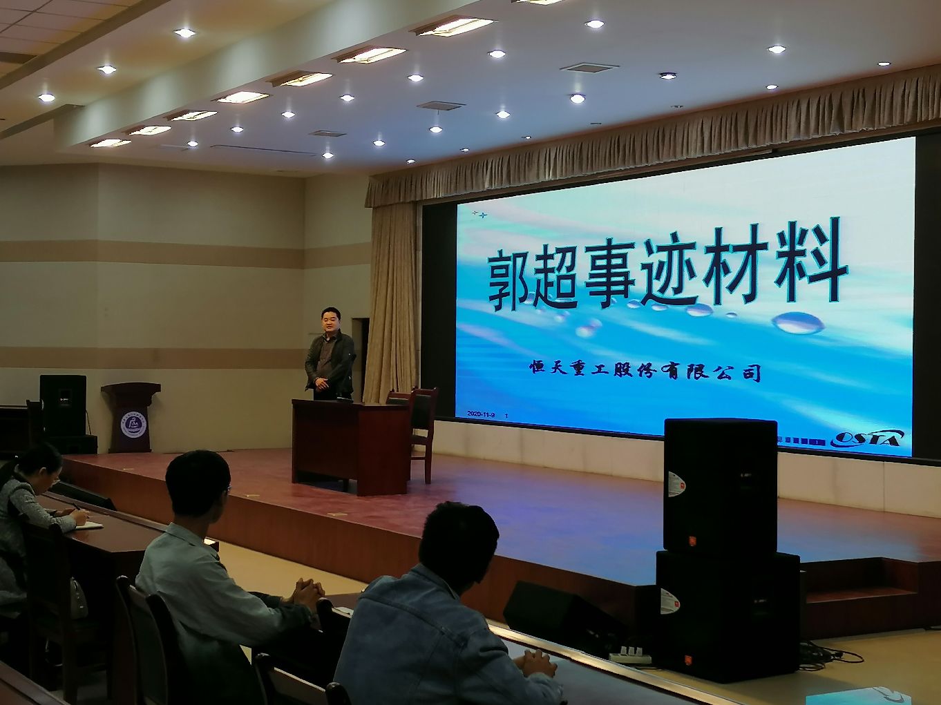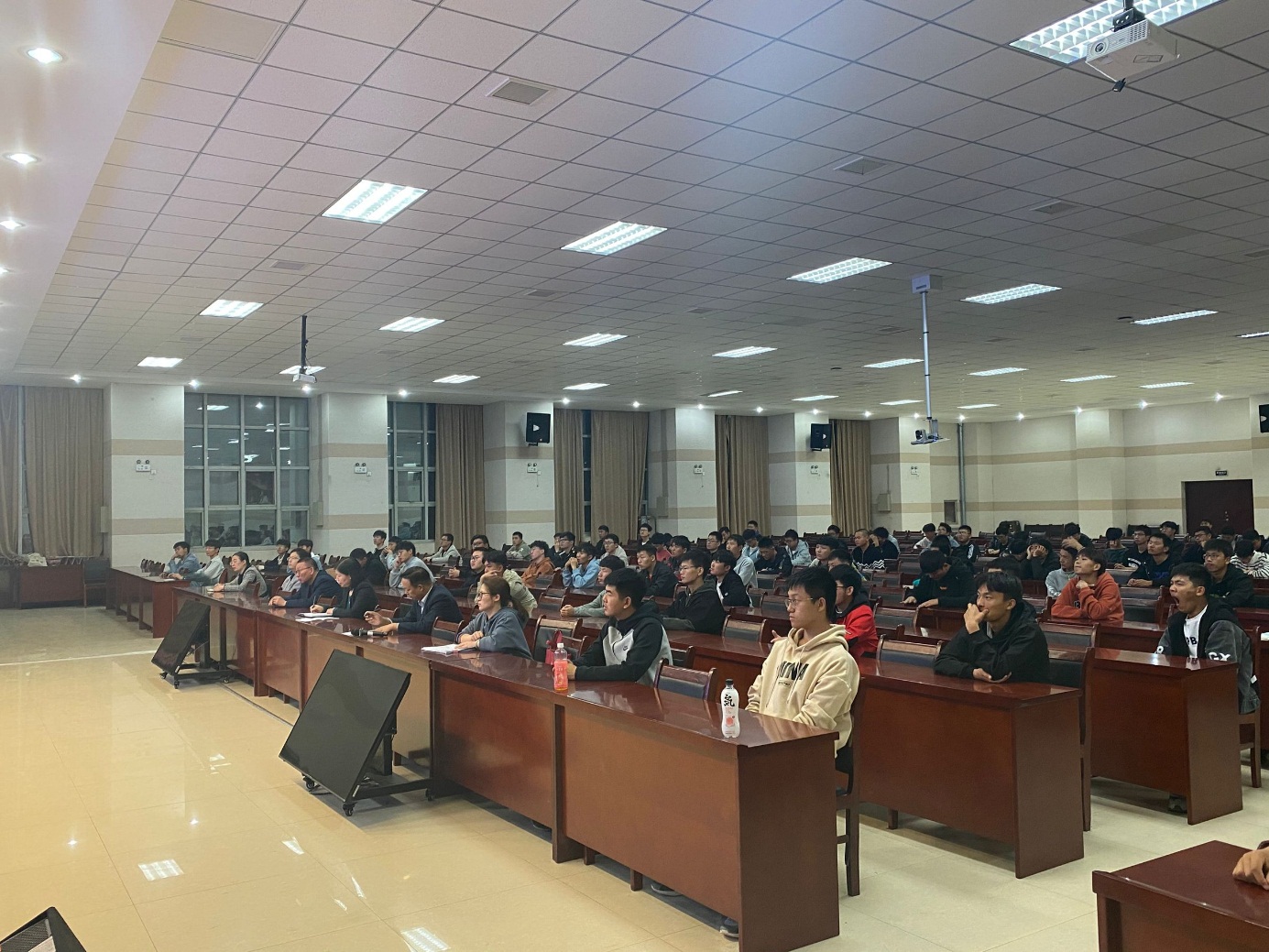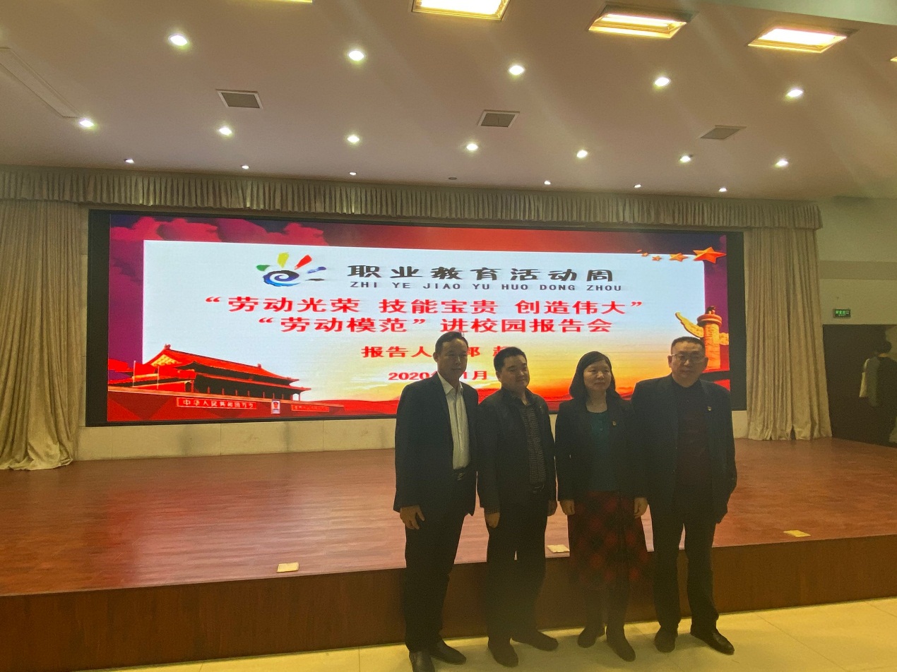 为响应学院职业教育活动周“弘扬劳模精神,彰显应院风采”主题活动,提高模范育人效应,机电工程学院于2020年11月9日晚上6点在学校实训中心二楼会议室开展了“劳动模范进校园”报告会。本次报告会邀请到了河南省劳动模范、郑州航天重工股份有限公司的郭超同志作为主讲。机电工程学院党总支书记邓艳丽、院长黄双成、副院长李凤银及学院师生代表出席了本次会议。