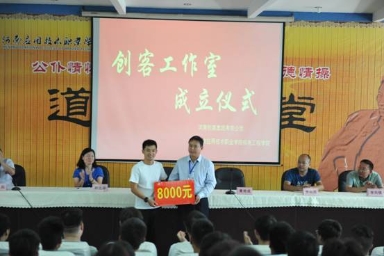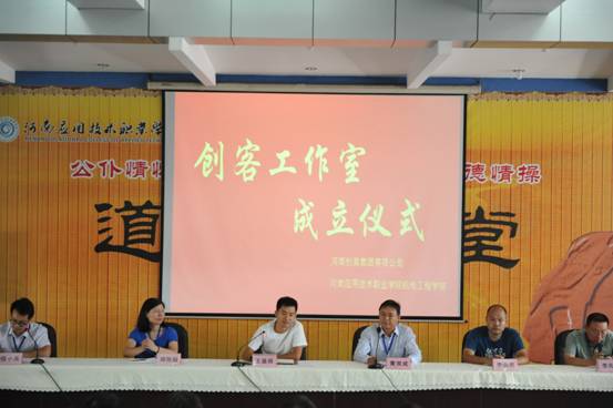 为培养学生的动手及创造能力,促进综合素质的全面发展,经过前期的筹备和组织,9月26日中午,河南应用技术职业学院机电工程学院和河南创美实业集团有限公司联合成立的“晟辉创客工作室“启动仪式在B楼学术报告厅顺利举行。机电工程学院院长黄双成、河南创美实业集团有限公司研发部经理王晨辉、校就业办主任李向民、机电工程学院党总支书记邓艳丽、副院长李凤银和机电工程学院杰出人才班16和17级的全部同学参加了本次会议,会议由机电工程学院党总支副书记候小兵主持。