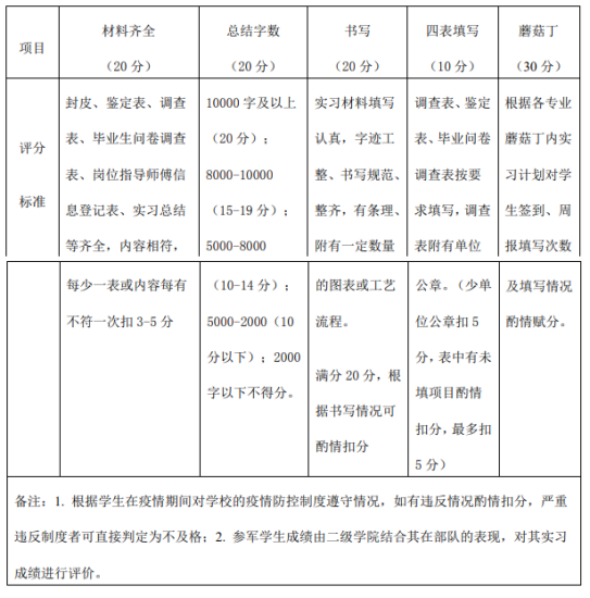 2.对于实习手册上交不全的同学,根据评分标准可以认定为成绩不及格,但不得报送缺考;