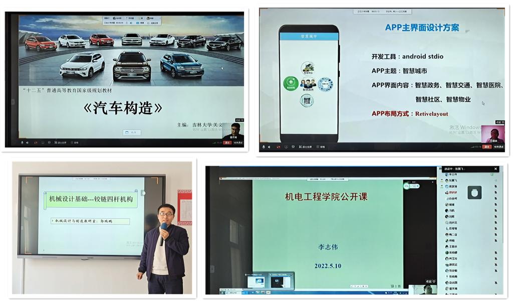 比赛过程中,郭瑞鹏老师的《铰链四杆机构》、李志伟老师的《阶跃函数》、 王丽余老师的《APP界面的布局》,董芳甫老师的《发动机工作原理》 获得了老师们的一致好评,四位老师声情并茂、神采奕奕、落落大方,将机电工程学院青年教师的风采展现得淋漓尽致。黄双成院长、邓艳丽书记、李凤银副院长、各教研室主任和教学经验丰富的教师对四位教师的优点给予肯定,同时提出了中肯的改进建议。