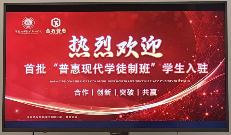 为贯彻落实教育部办公厅印发《关于全面推进现代学徒制工作的通知》文件精神,推进现代学徒制和访企拓岗工作,提升人才培养质量,拓宽毕业生就业渠道,保障毕业生就业针对性和稳定性,河南应用技术职业学院与河南金石惠普有限公司联合举办的首批“普惠现代学徒制专班”于3月13日正式开班。