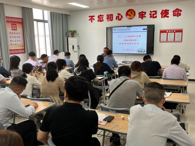 为进一步严肃考风考纪,规范考试流程,提升教学质量,确保2022~2023学年第二学期期末考试顺利进行,6月6日下午机电工程学院在A212召开了期末考试考务工作会议,学院全体教师参加了本次会议,会议由机电工程学院副院长李凤银主持。