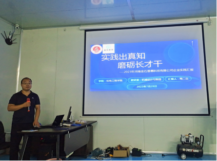 为进一步落实教育部等七部门印发的《职业学校教师企业实践规定》,提升教师实践教学能力,落实暑期一个月教师下企业实践成效,7月28日机电工程学院在河南金石普惠科技有限公司举行教师企业实践分享汇报会。学院院长黄双成、叶青玉老师、教务处张予新老师、企业总经理王晨辉以及机电工程学院的5名企业实践教师参加了分享汇报会,会议由机电工程院长黄双成主持。