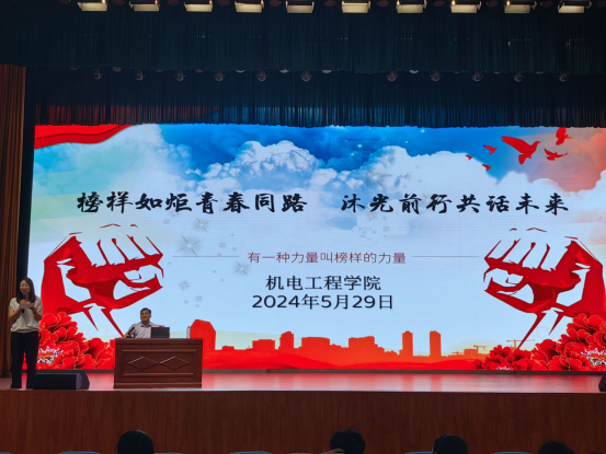 为树立学习典型,发挥榜样力量,引导学生树立远大理想,明确奋斗方向,机电工程学院于2024年5月29日开展“榜样如炬青春同路,沐光前行共话未来”主题宣讲活动,活动邀请到校2013届优秀毕业生王世峰重返母校,分享成长之路上的宝贵经验。机电工程学院院长黄双成,党总支副书记耿丽敏,机电工程学院专兼职辅导员和400余名学生参加本次活动,本次活动由副书记耿丽敏主持。