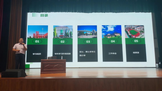浓浓母校情,悠悠学子心。王世峰系河南应用技术职业学院2010级学生,2013年考入郑州航空工业管理学院进行本科阶段学习,2015年考入河南理工大学攻读硕士,2023年博士毕业于中国矿业大学,目前在华北水利水电大学任职。王世峰怀着无比激动的心情,从自己在河南应用技术职业学院学习经历开始说起,从学习压力与焦虑情绪、时间管理与效率提升、学科知识掌握与巩固、人际关系处理与沟通技巧、未来规划与目标设定等方面与学弟学妹们分享了自己的学习经历、奋斗历程和成长感悟,带领学生认识努力学习科学知识的重要性。王世峰激励学弟学妹们:“用心学习,提前规划,脚踏实地,求真务实,相信努力的力量,对未来充满信心”。