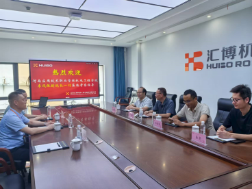 参观结束后,校企双方进行了深入座谈交流。李凤银副院长首先介绍了机电工程学院的专业设置、人才培养模式改革和实验实训教学设施建设情况,他表示学院一直致力于培养具有实践能力和创新精神的高素质机电工程人才,希望通过与企业的合作,实现学校与企业的优势互补、资源共享,共同为行业的发展做出贡献。汇博机器人方面对学院的到访表示热烈欢迎,并详细介绍了企业的发展历程、主营业务和发展规划;企业负责人表示,随着智能制造和机器人产业的快速发展,企业对机电工程专业人才的需求日益增长;企业非常期待与机电工程学院建立合作关系,共同培养适应市场需求的应用型人才。此次参观访问加强了学院与企业之间的联系,深入了解企业对人才的需求,为学院与汇博机器人的合作奠定了坚实的基础,也为学院学生的实习与就业提供了更多的机会和广阔的发展空间。