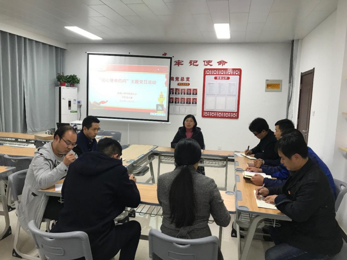 根据学校《关于在“不忘初心、牢记使命”主题教育中开展党员“初心使命四问”主题党日活动的通知》要求,2019年11月19日,机电工程学院党总支教工党支部和学生党支部分别举行了“初心使命四问”主题党日活动。