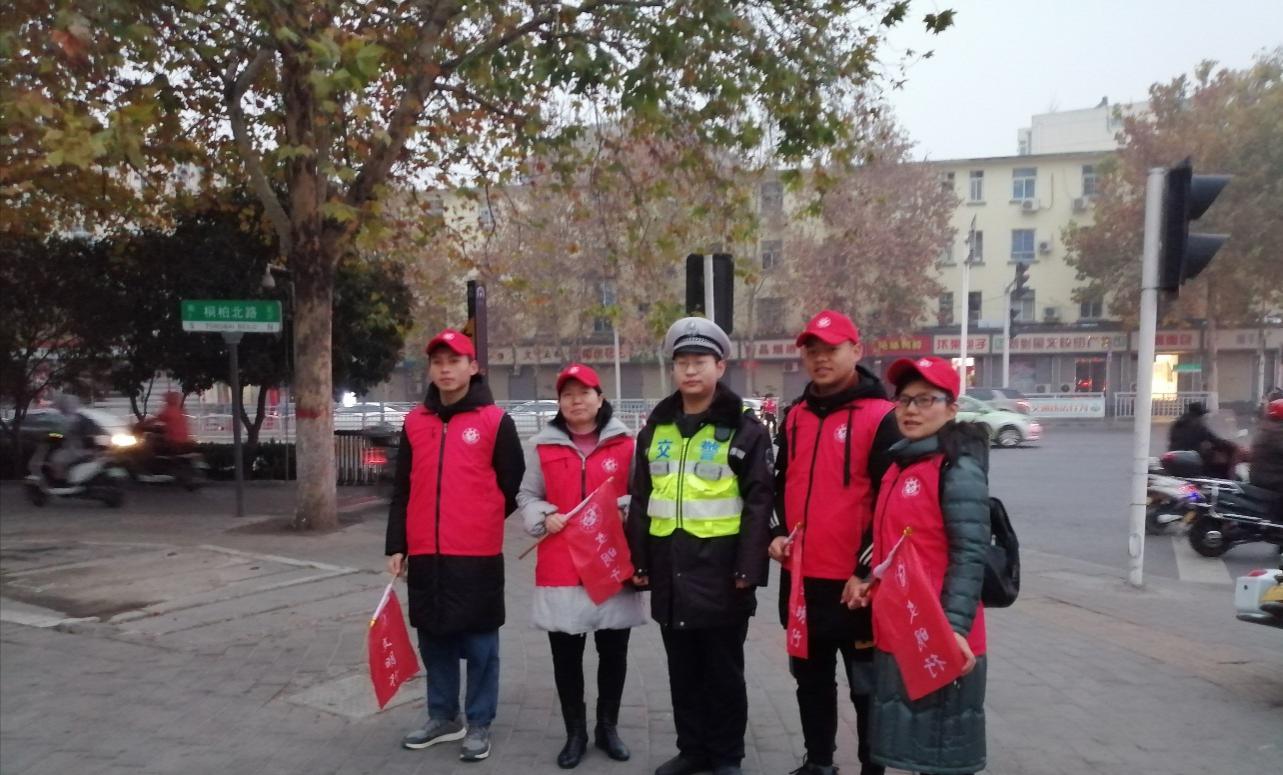 为了进一步推动郑州市文明城市建设,我校承担了桐柏路和棉纺路交通岗文明出行的交通志愿服务活动。2019年12月25日早上7点20分,机电工程学院党总支邓艳丽副书记带领文明交通岗志愿服务团队到达岗位,并与该路口的交通民警进行沟通,具体了解执行任务要求。然后开始协助民警维持早高峰7点半至8点半的交通秩序,及时劝阻一些不文明出行行为。