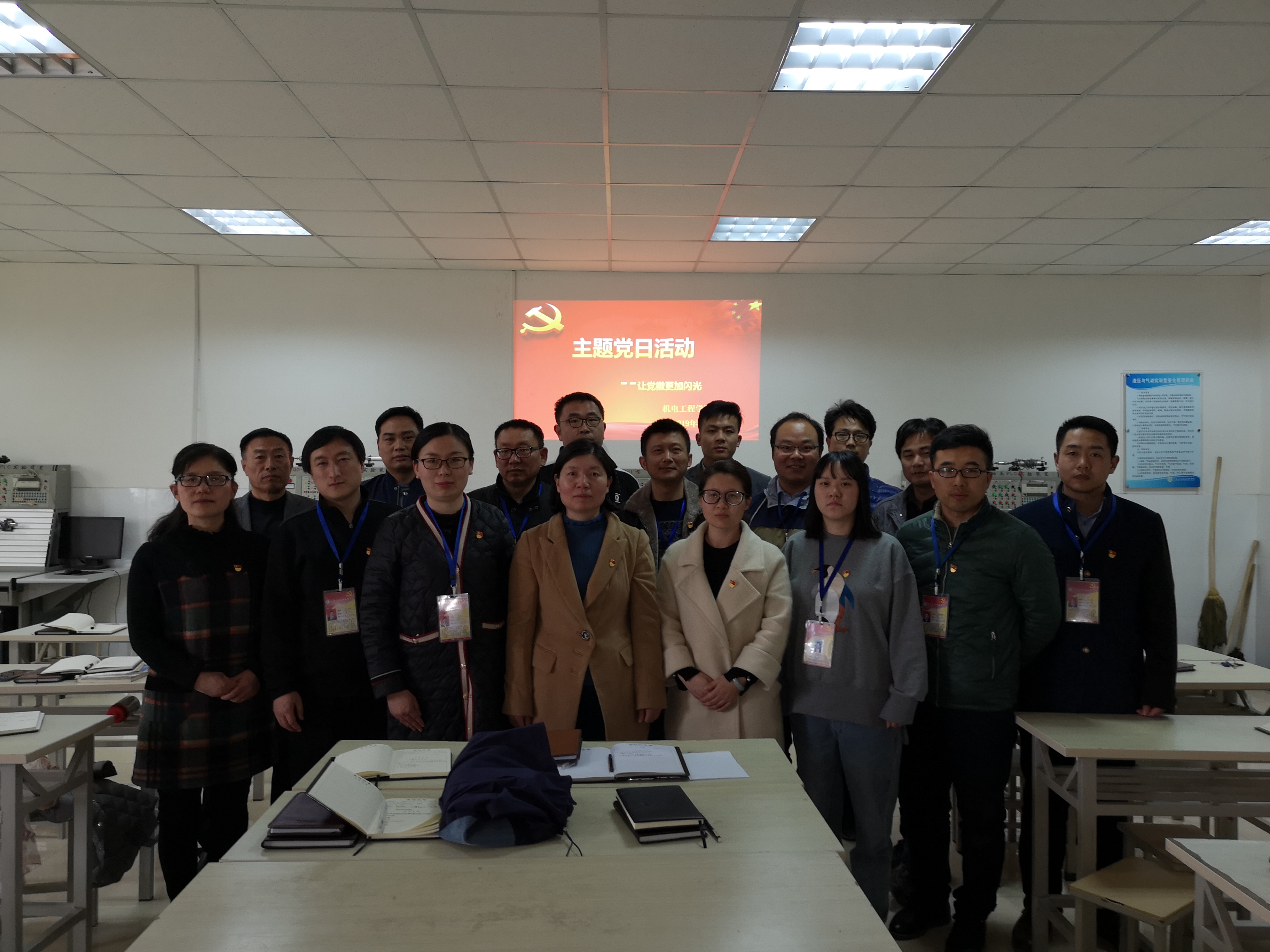 2019年4月9日,机电工程学院党总支在实训中心E508开展了“让党徽更加闪光”主题党日活动,机电工程学院党总支全体党员共同参加了此次活动。