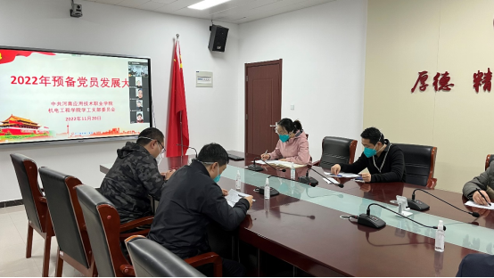 按照学校党委学生党员发展工作安排,2022年11月20日,机电工程学院党总支学工党支部召开中共河南应用技术职业学院机电工程学院学工支部委员会党员发展大会,讨论接收李向阳等7名同志为预备党员问题。按照学校疫情防控要求,结合支部实际,本次会议采取线上线下结合的方式进行。学工党支部9名党员全部出席会议,会议由党支部书记耿丽敏主持。