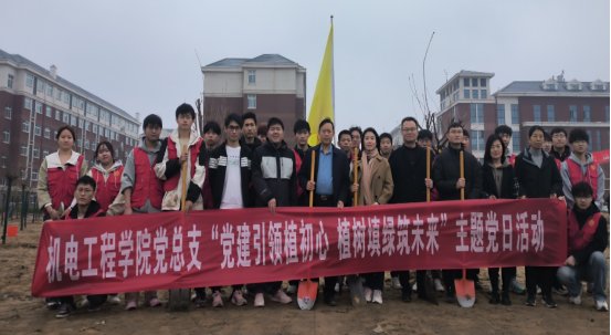春回大地、生机盎然。3月24日上午,机电工程学院党总支在开封校区北院开展“党建引领植初心 植树填绿筑未来”主题党日活动,校党委委员、组织部长滕文锐和我院部分师生代表等30余人参加活动。