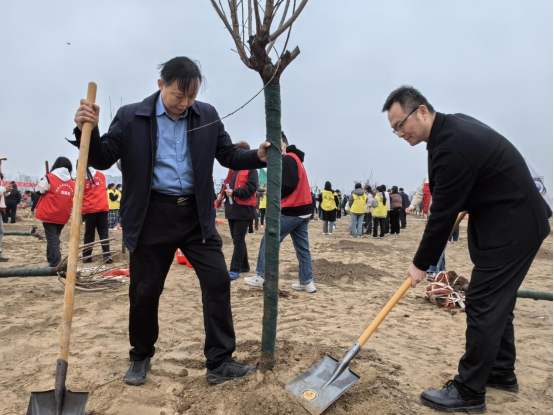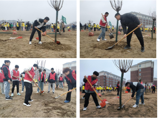 活动中,滕文锐委员与我院师生们亲切交流,师生们热情高涨,干劲十足,在技术人员的指导下,大家手执铁锹、水桶等工具,分工协作、默契配合,挖土放苗、扶苗培土、踩土固苗、浇水施肥,所有程序有条不紊开展,每一个环节都一丝不苟,积极投身植树护绿行动当中,为美丽校园建设贡献自己的智慧和力量。春风拂过,一棵棵树苗迎风而立,焕发出春的生机和活力。