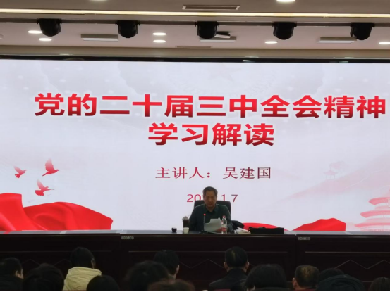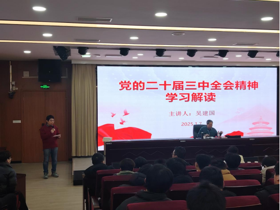 为深入贯彻党的二十届三中全会精神,引导广大党员教师和学生深刻领悟全会精神实质,增强责任感与使命感, 1 月7日下午,机电工程学院党总支在 B 楼 2 楼报告厅召开“深刻领悟党的二十届三中全会精神,努力建设中国特色的社会主义教育强国”的主题党日活动。活动特别邀请到中原区委党校原常务副校长、“星火” 宣讲团成员吴建国老师担任主讲人。学院党政领导班子成员以及教师和学生党员代表共同参加。