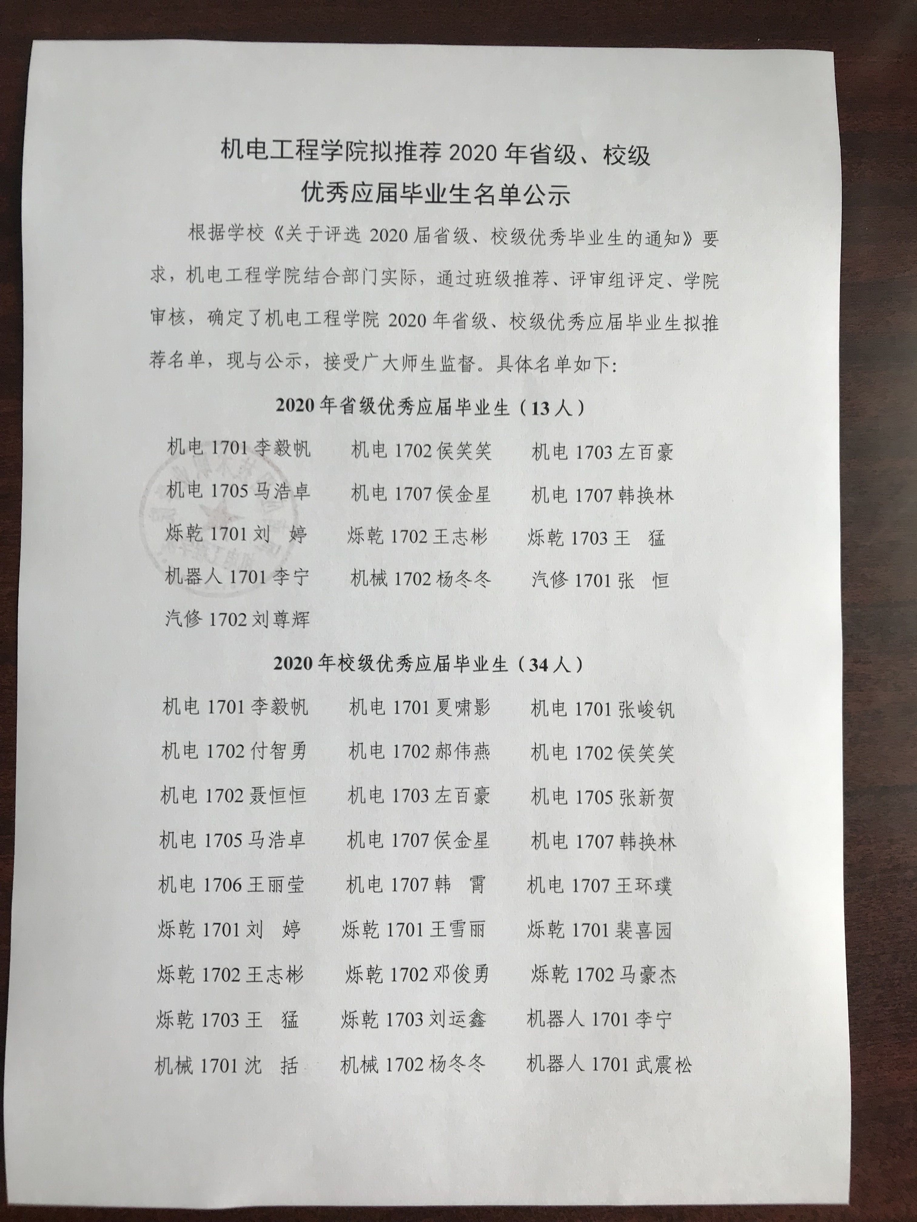 下一条:机电工程学院2020年河南省普通高等学校三好学生、优秀学生干部和先进班集体拟推荐名单公示