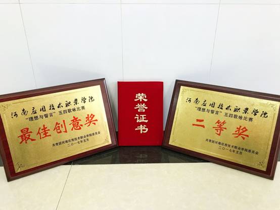 机电工程学院代表队以饱满的精神面貌、高涨的热情、宏亮的声音,彰显了机电学子的精神面貌,唱出了同学们的爱国情怀,唱响了学生们的热血青春,整个现场气氛活跃,高潮迭起。最终机电工程学院代表队以优异的成绩揽获三个奖项,奖获得了团体二等奖、最佳创意奖、卢艺萱同学获得最佳指挥奖。