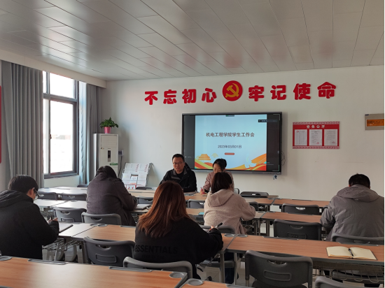为了加强机电工程学院辅导员队伍建设,转变辅导员工作作风,增强辅导员队伍的凝聚力和向心力,保证学生管理工作的规范化和科学化,机电工程学院于2023年3月1日召开“只争朝夕抓落实,凝心聚力促成长”学生工作专题会议。机电工程学院书记张亮、副书记耿丽敏出席会议,东西校区各年级辅导员参加会议,会议采用在现场和线上混合方式进行,会议由学院副书记耿丽敏主持。