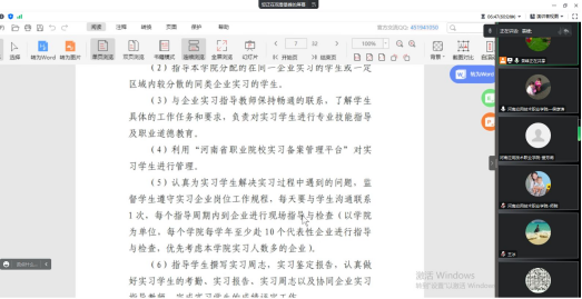 会上,李凤银首先带领大家共同学习了应院【2022236号河南应用技术职业学院关于印发《学生实习管理办法(试行)》的通知和教育部等八部门关于印发《职业学校学生实习管理规定》的通知等两个文件;其次,就如何做好学生岗位实习备案系统的APP下载安装、账户激活、专业实习计划和任务上传、岗位实习单位考察、实习协议签订、平台实习岗位签约、学生自行联系实习单位申请办理等操作流程做了介绍和说明;最后,对做学生离校前的岗位实习工作提出两点要求:一是多与学生沟通,充分了解学生目前岗位签约状态,督促学生尽早签约,不要等靠和观望,确保学生离校就能到岗;二是学院将加强督促检查,以后每周将公布一次班级岗位签约率,对签约率低的班级提出批评并要求整改。