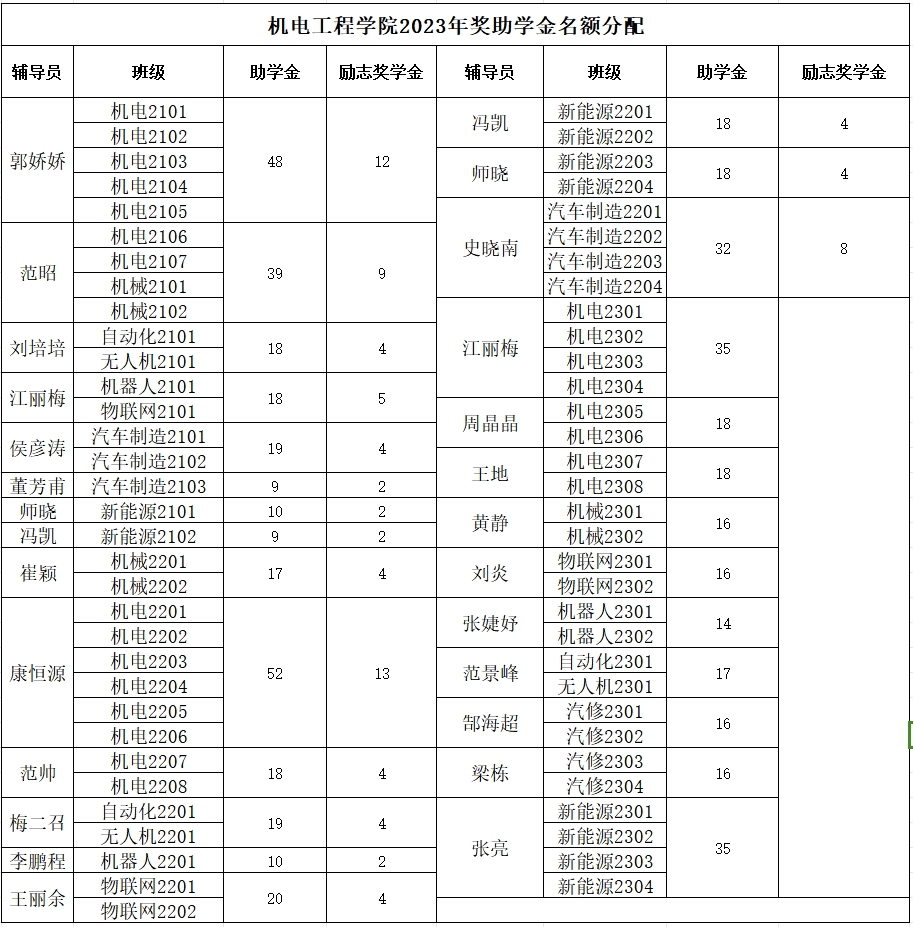 为做好机电工程学院2023年国家奖助学金评审工作,根据财政部、教育部、人力资源社会保障部、退役军人部、中央军委国防动员部《关于印发〈学生资助资金管理办法〉的通知》(财科教〔2021〕310号)要求、《河南省省级学生资助专项资金管理办法》(豫财教〔2022〕118号)和《河南省学生资助项目管理办法》(豫财教〔2023〕)学校《河南应用技术职业学院关于做好2023年国家奖助学金评审工作的通知》有关规定,结合学院工作实际,经过党政班子研究,现就评审工作的有关要求通知如下: