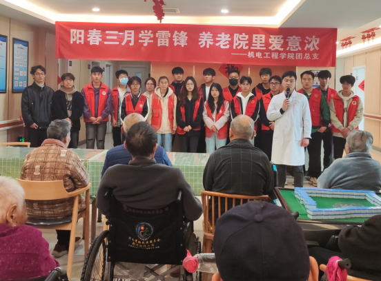 为了弘扬中华民族的传统美德,倡导尊老敬老爱老助老的良好风尚,营造敬重老人爱护老人的良好氛围,2024年3月26日,机电工程学院“正青春”志愿者服务队前往郑州市凯安医养中心,开展养老院送温暖志愿服务活动,为老年人生活增添色彩,提升老年人幸福指数,用实际行动向雷锋同志学习,传递“奉献有爱互助进步”的志愿精神。