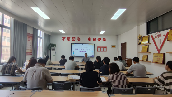 随后,副书记耿丽敏对期末工作进行具体安排部署,一是23级各班要做好期末考试诚信教育和假期离校安全教育工作,重点指导入党积极分子的返家乡实践活动;二是22级岗位实习的学生,要加强实习安全教育,及时与家长沟通,做好学生离校服务工作;三是认真做好毕业生档案整理和审核工作,积极拓展就业信息,重点做好家庭经济困难学生群体就业帮扶工作,部署安排好毕业生的毕业证领取工作等。