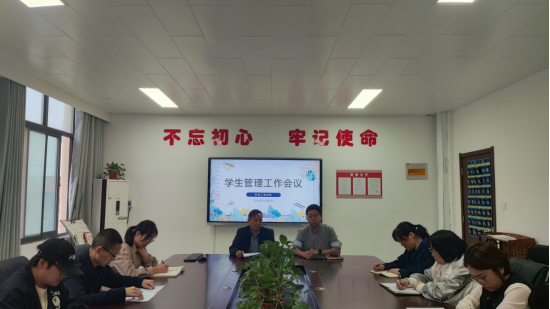 党总支书记贾建树作总结发言。他指出,学生管理工作犹如校园生活的坚实基石,关乎每一位学生的成长与发展。良好的学生管理能够为学生营造积极向上的学习氛围,激发学生的学习热情和创造力,助力他们在知识的海洋中茁壮成长,其重要性不言而喻。他强调,一是要加强学生安全管理,将安全工作放在首位,确保学生的人身安全和校园稳定;二是要加强师生联动,及时与学生沟通交流,了解学生的需求和想法,建立良好的师生关系;三是要提高工作效率,不断创新工作方法,提升学生管理工作的质量和水平。