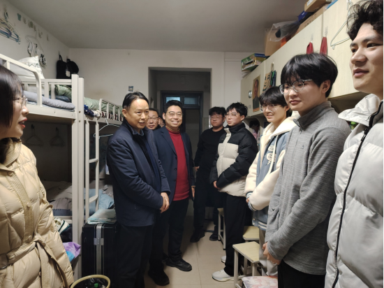 当课堂的知识余韵还在校园里回荡,学院的领导们已将关怀的脚步迈向了学生宿舍。党总支书记贾建树、院长黄双成、副书记耿丽敏、副院长李凤银逐一走访宿舍,与同学们亲切交流。他们关心同学们寒假生活的欢乐点滴,聆听返校途中的新鲜见闻,询问大家在学习生活上的困难。同学们围在老师身边,你一言我一语,欢声笑语回荡在整个宿舍区。老师们的鼓励话语,犹如激昂奋进的号角,在宿舍的每一个角落回响,激励着同学们在新学期立下鸿鹄之志,勇敢地朝着知识的高峰攀登。机电工程学院的学子们将以全新姿态投入新学期,在新征程上绽放光彩。